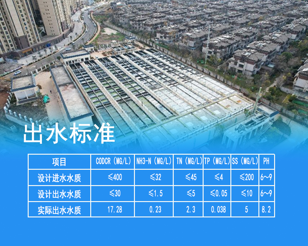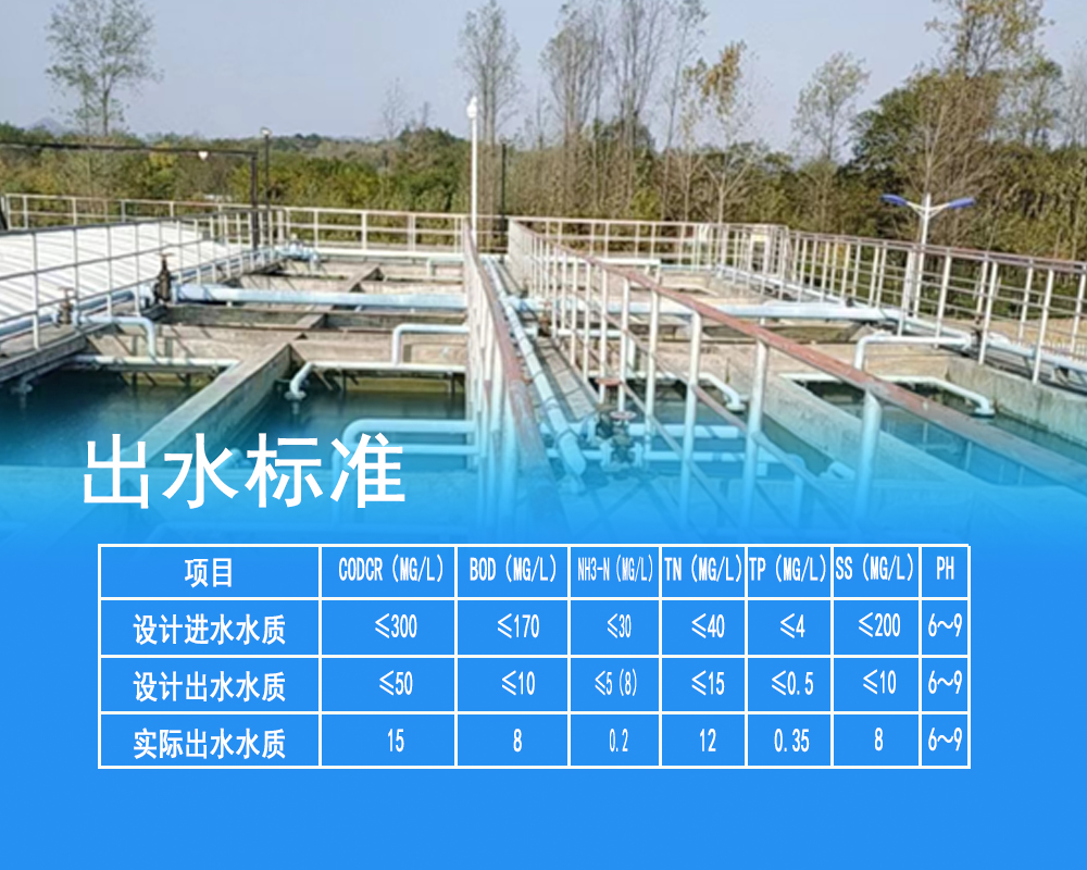处理规模:100t/d,采用工艺:BMR,进水水质:生活污水,出水水质:国家一级A标准