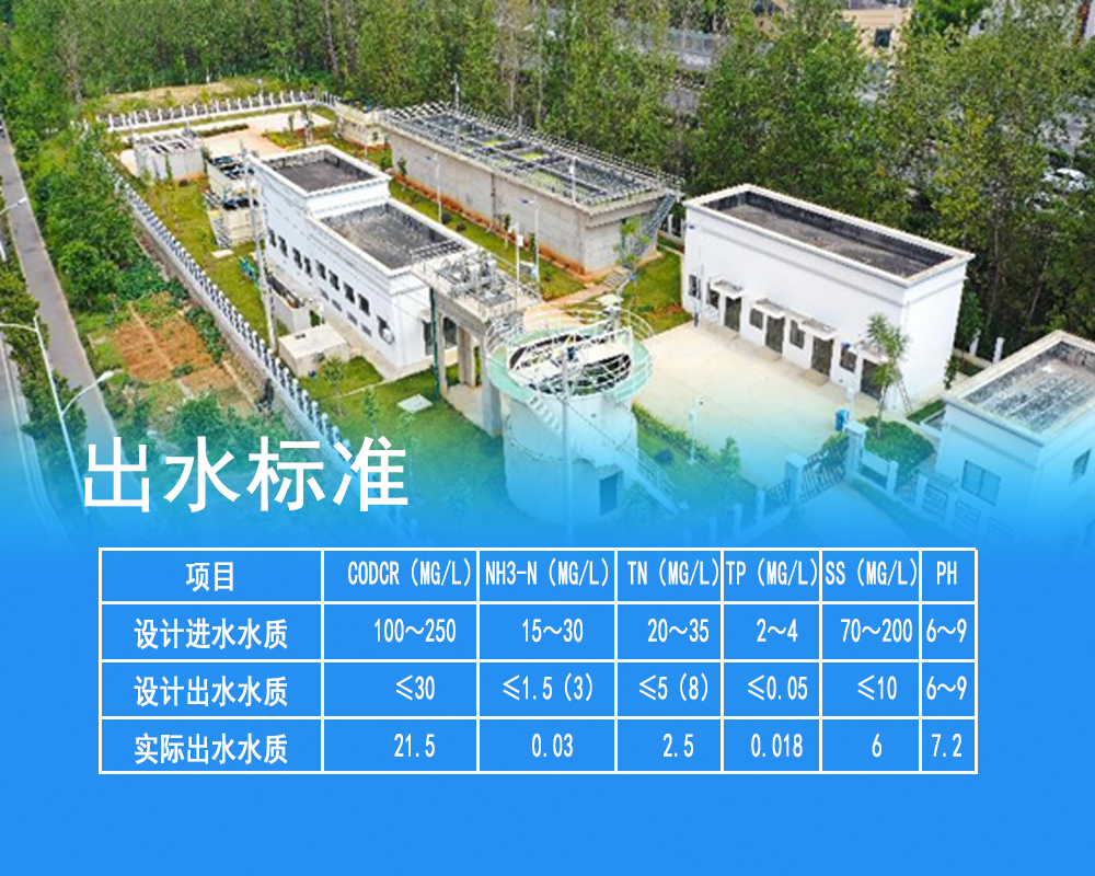 处理规模:100t/d,采用工艺:BMR,进水水质:生活污水,出水水质:国家一级A标准